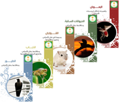 | يهدف مشروع رصد آفات الصحة العامة المنفذ إلى التعريف بآفات الصحة العامة وتحديد بيئاتها وأماكن توالدها وفترات كثافتها وطرق مكافحتها، بالإضافة إلى مايلي: |